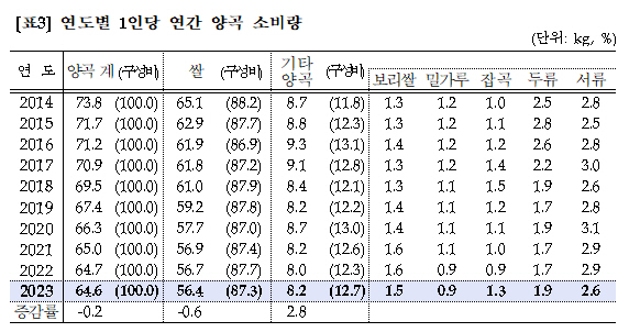 우리 국민의 연간 쌀 소비량은 해가 갈수록 가파르게 줄어들고 있습니다.