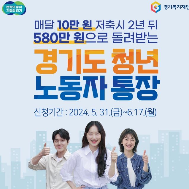 경기도 청년 노동자 통장은 경기도에 거주하는 19세~39세 청년 노동자들을 위한 금융 지원 사업입니다. 매달 10만원씩 2년간 저축하면 만기 시 580만원 (현금 480만원, 지역화폐 100만원)을 받을 수 있는 매력적인 사업입니다.