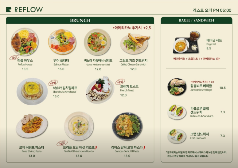 리플로우는 직접 로스팅한 원두를 사용하여 깊고 풍부한 커피 맛을 자랑하는 곳으로 유명합니다. 스페셜티 커피를 취급하는 만큼, 커피 애호가들의 까다로운 입맛을 만족시킬 다양한 메뉴를 갖추고 있습니다.