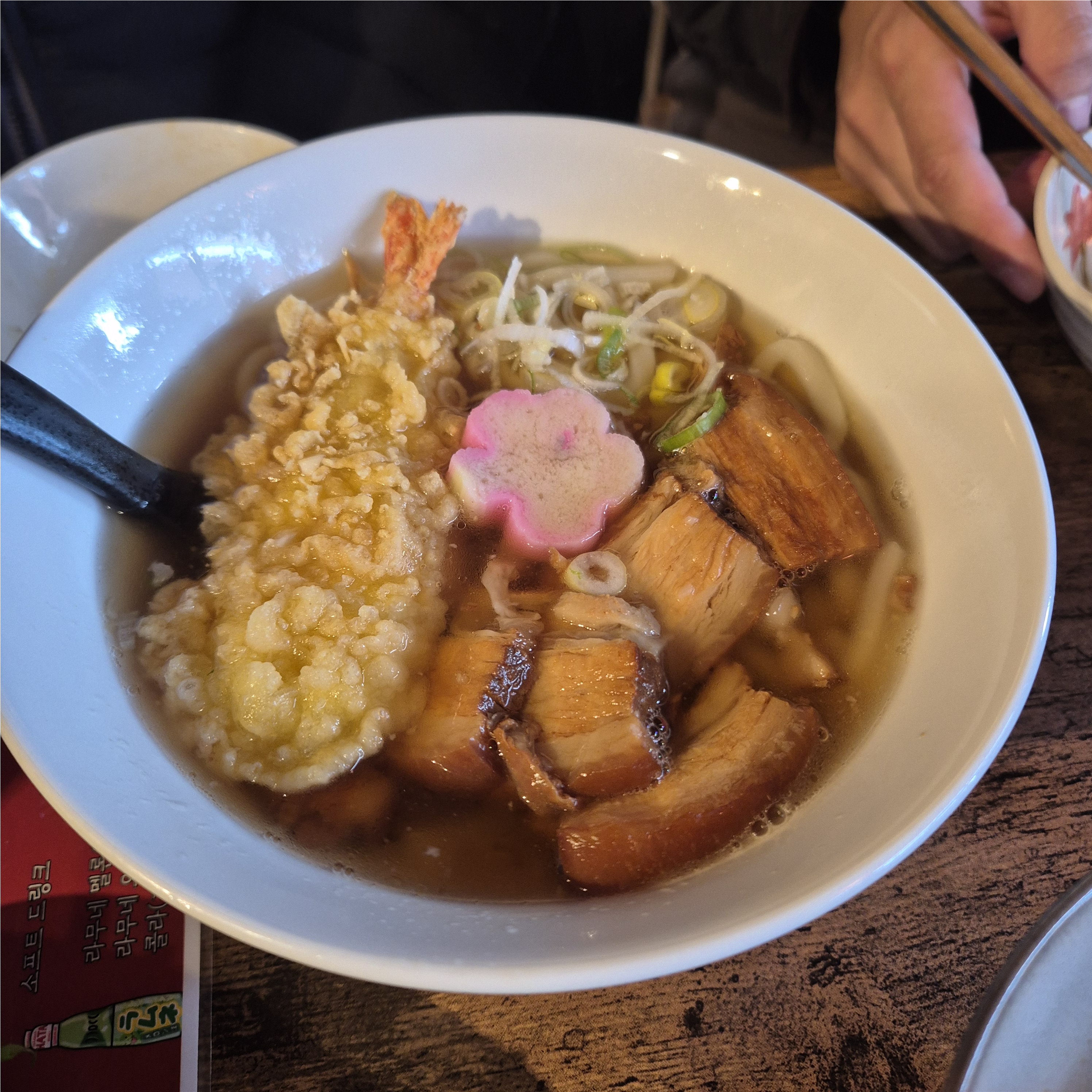 - 스페셜 우동(1,200엔): BEST답게 토핑이 후루룩! 새우튀김 바삭하고 국물이 깔끔해 일본 우동 입문용으로 딱. 유부초밥+라무네 추가 시 1,750엔 완벽 세트.