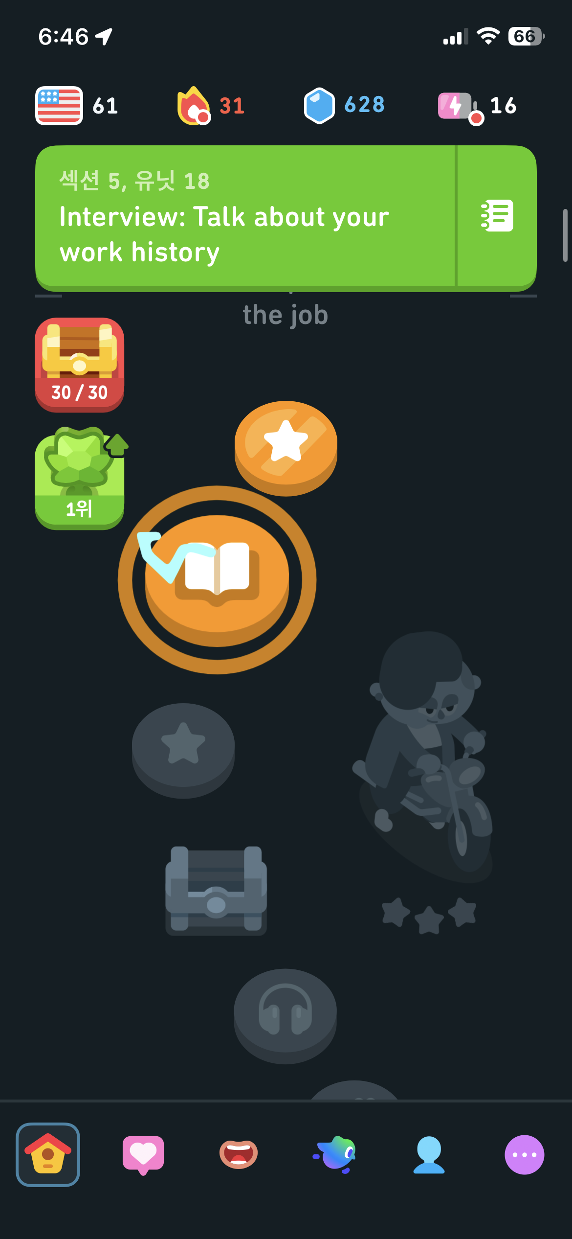 요즘 듀오링고가 언어만 하는 앱이 아니라는 걸 새삼 느끼게 됩니다.