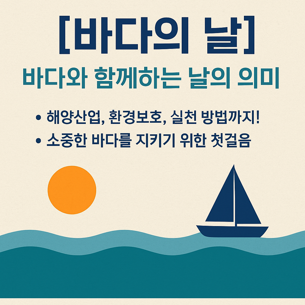 바다의 날은 단순한 기념일이 아니라, 해양 산업의 중요성, 바다 생태계 보전, 그리고 해양안보와 주권의식 고취라는 의미를 담고 있습니다.