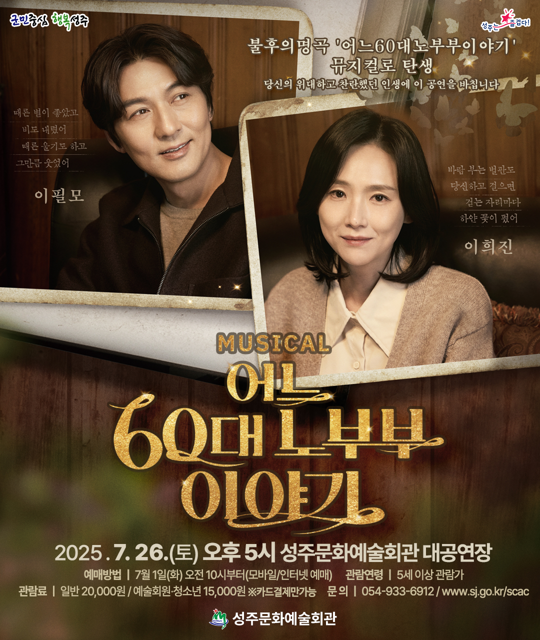 《어느 60대 노부부 이야기》는 단순한 공연을 넘어, 우리 모두의 삶과 사랑, 그리고 가족의 소중함을 다시 한 번 일깨워주는 무대입니다.