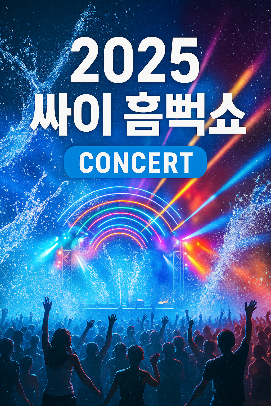 싸이 흠뻑쇼는 단순한 콘서트가 아닌, 여름을 대표하는 ‘물의 축제’입니다. 2025년에도 전국을 뜨겁게 적실 싸이의 무대가 여러분을 기다립니다. 치열한 예매 경쟁을 뚫고, 올여름 최고의 추억을 만들어보세요!