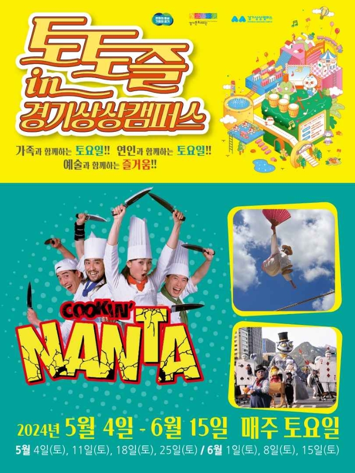 토토즐 in 경기상상캠퍼스는 경기도 수원시 권선구 경기상상캠퍼스에서 매주 토요일마다 열리는 다채로운 문화 예술 프로그램입니다. 2024년 5월 4일(토)부터 6월 15일(토)까지 한 달 동안 매주 토요일 12시부터 오후 6시까지 펼쳐집니다.